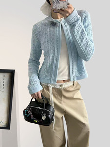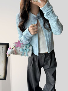 蓝色小香风毛衣外套女法式千金名媛穿搭百搭时尚气质针织开衫上衣