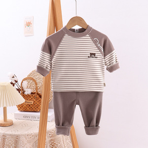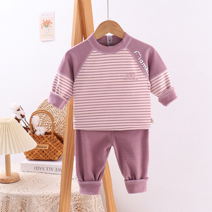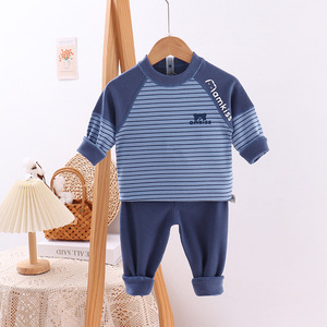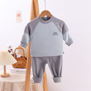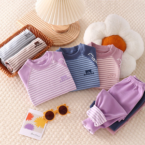 儿童保暖内衣套装男童女童加厚秋衣秋裤无骨条纹睡衣中大童家居服