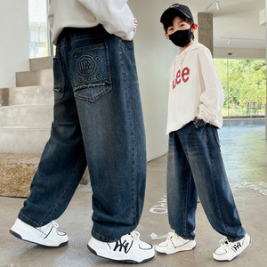 新款春秋男童牛仔裤宽松裤子儿童牛仔裤中大童长裤老爹裤洋气潮流