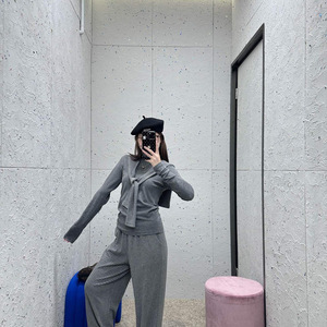 ch斑马条纹三件披肩圆领上衣+休闲裤日常穿搭25早秋8月新品套装