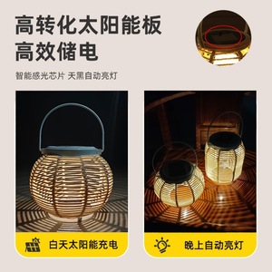 跨境太阳能灯笼庭院灯氛围灯藤编日式花园装饰竹编灯田园风庭院灯