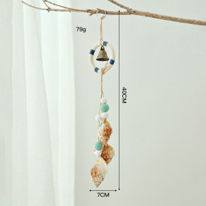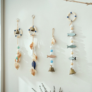地中海风格墙面装饰救生圈贝壳挂件实木麻绳风铃创意北欧墙壁家居
