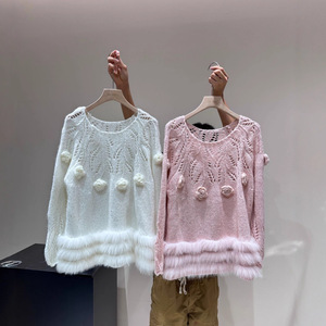 韩系温柔花朵镂空针织毛衣开衫女春秋新款狐狸毛皮草外套宽松上衣