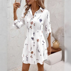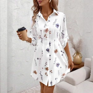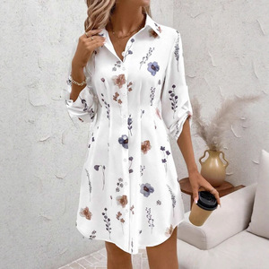 2025外贸跨境时尚百搭通勤花卉印花衬衫裙秋季女装连衣裙