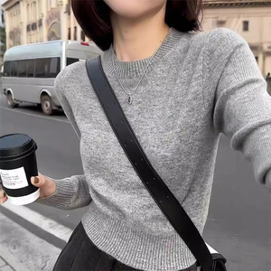 早秋新款圆领100羊毛衫女短款软糯高腰上衣薄款打底羊绒毛衣百搭
