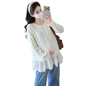 孕妇装秋季新款宽松休闲甜美T恤韩版拼接花边小香风娃娃衫上衣女