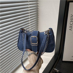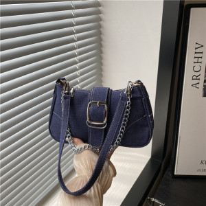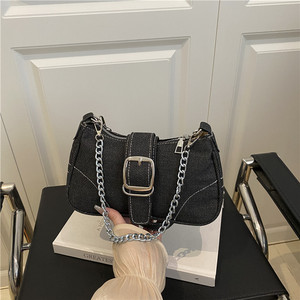 简约帆布牛仔质感时尚2025大容量休闲链条休闲通勤单肩腋下包包女