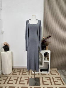 08.25新品95折松弛美女 羊毛针织开衫吊带长裙套组