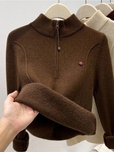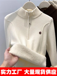 一体绒面料 别致半拉链加厚内搭针织毛衣秋冬半高领正肩打底上衣