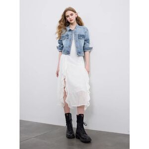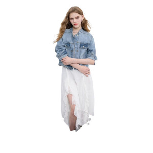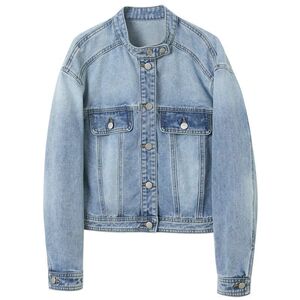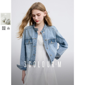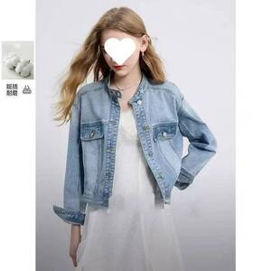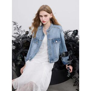 2025春季新款宽松短款水洗浅蓝色牛仔外套立领夹克上衣女休闲时尚