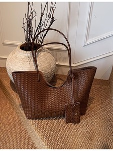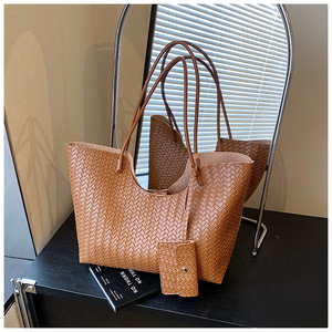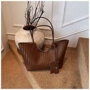 跨境大容量编织包女秋冬2025新款休闲单肩子母包复古高级感托特包