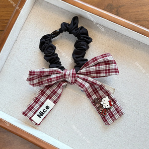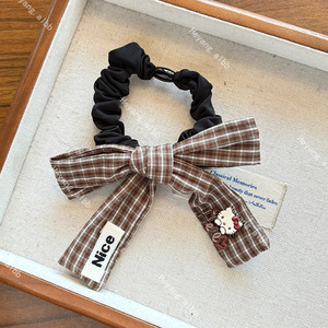 韩版新款潮流蝴蝶结格纹发绳简约优雅气质绑马尾皮筋发圈发饰批发