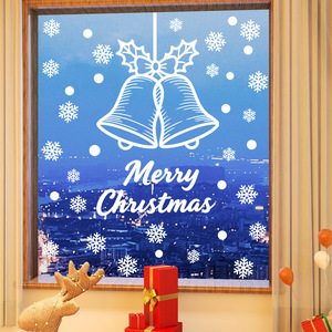 圣诞装饰品玻璃静电贴纸圣诞节派对装饰雪花窗贴圣诞铃铛雪花贴画