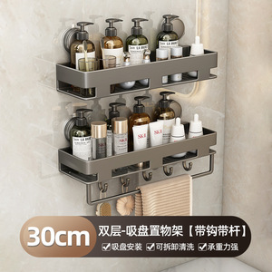 吸盘壁挂式卫生间置物加高免打孔挂墙洗手间厕所洗漱台收纳台轻奢