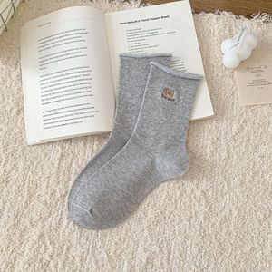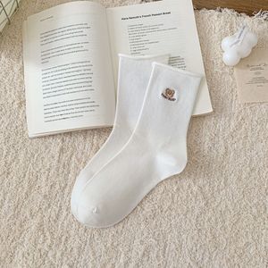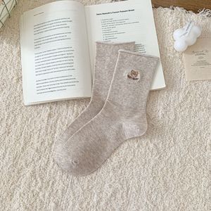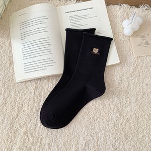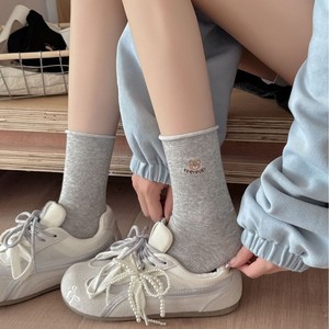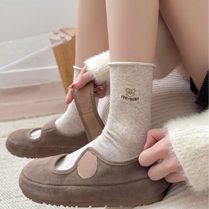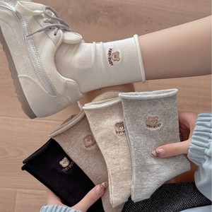 秋冬季新品拼色毛绒卡通动物保暖中筒袜日系复古卡通小熊棉长袜