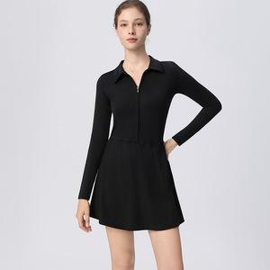 欧美高尔夫连体网球裙女长袖运动健身瑜伽服连衣裙速干内衬防走光