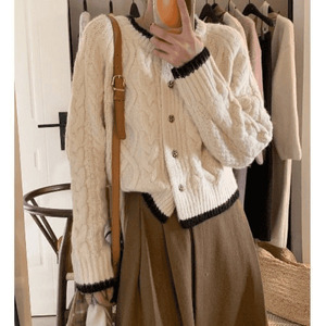 欧货撞色毛衣外套女2025秋冬新款胖mm慵懒风宽松粉色针织开衫上衣