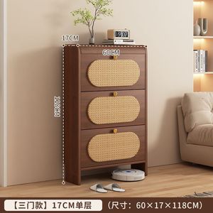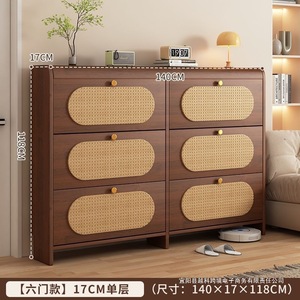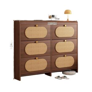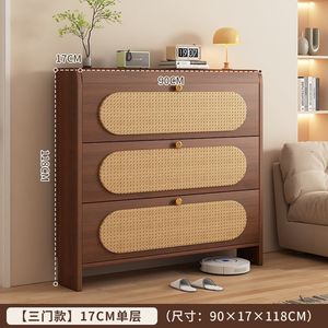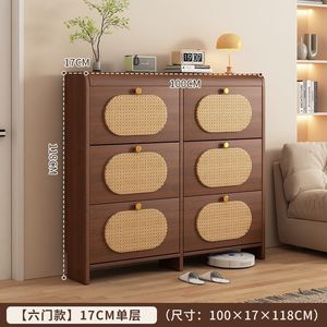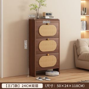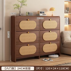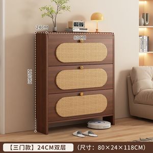 中古风超薄翻斗藤编鞋柜家用门口新款25爆款玄关柜一体实木色鞋架