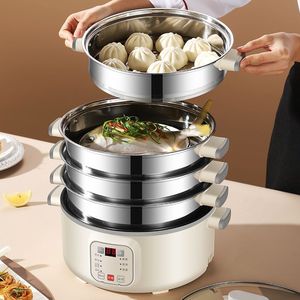 电蒸锅电蒸三层自动电锅断电煲汤多功能大容量蒸笼蒸煮一体电火锅