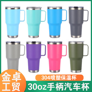 跨境304不锈钢大容量30oz手柄汽车保温杯车载便携保冷冰霸杯900ml