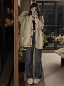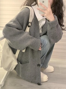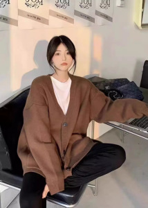 软糯慵懒风毛衣开衫女2025春秋季新款韩系高级感V领早春针织外套