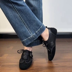羊皮版~2025新款法式复古小众时尚气质圆头平底德训鞋休闲单鞋女