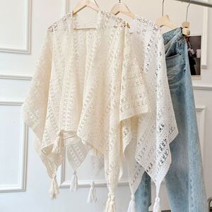 复古民族度假风针织流苏开衫女薄款春夏小披肩配裙子外搭蕾丝罩衫