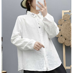 樱花风铃秋提花刺绣女2025新款长袖衬衣百搭文艺白衬衫休闲内搭