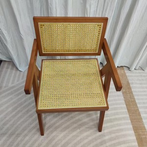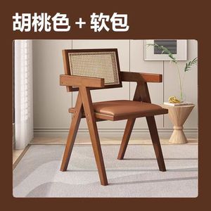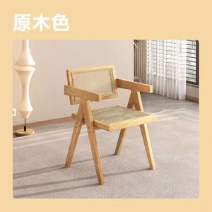 北欧客厅餐椅昌迪加尔民宿餐椅中古风餐饮店家用实木藤编靠背餐椅