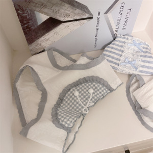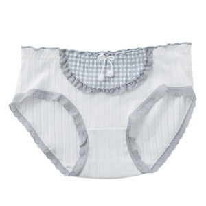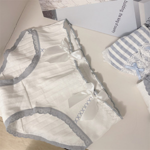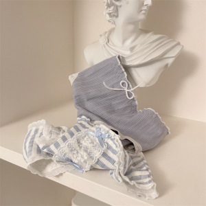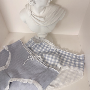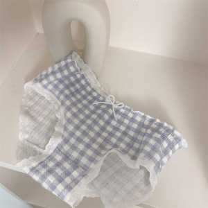 新款批发可爱洛丽塔雾蓝蕾丝围兜蝴蝶结格子纯欲可爱纯棉女士内裤
