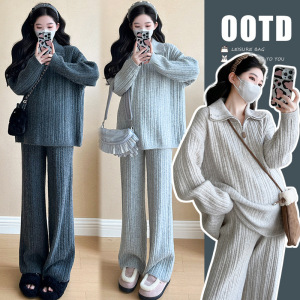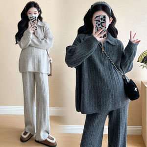 实拍 现货 秋冬孕妈妈休闲运动毛衣套装