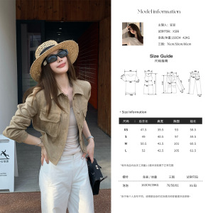 黑豆哼哼 伦敦旧梦*复古麂皮外套女秋卡其色短款工装夹克百搭上衣