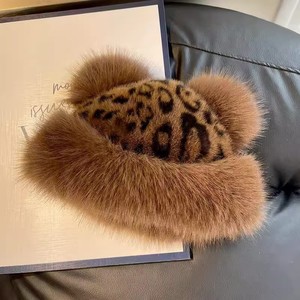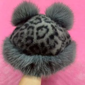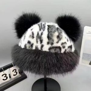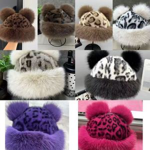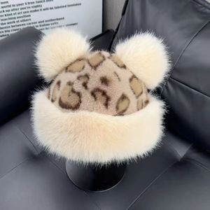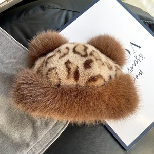 时髦豹纹小熊耳朵蒙古帽冬季仿皮草加厚保暖护耳盆帽仿貂毛渔夫帽