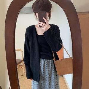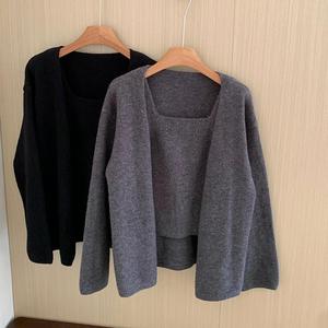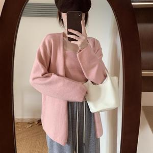 韩版温柔风宽松针织开衫吊带背心两件套春秋新品温柔减龄洋气毛衣