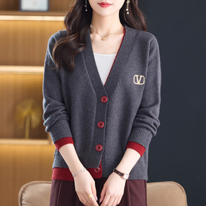 25秋冬新款短款开衫女V领菱形针织毛衣宽松慵懒风时尚外套
