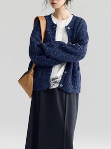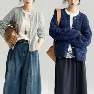 「白描工作间」"秋叶絮语"甄选羊驼毛花纱肌理氛围感圆领针织开衫