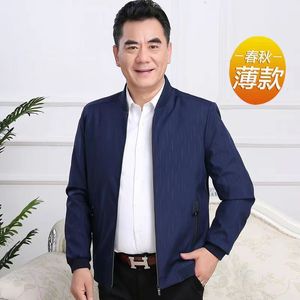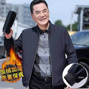 爸爸外套春秋季中年男士夹克立领衣服中老年秋装上衣时尚休闲包邮