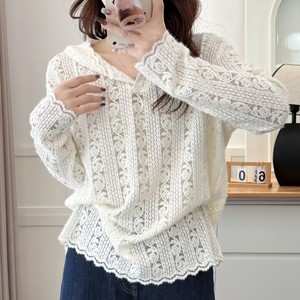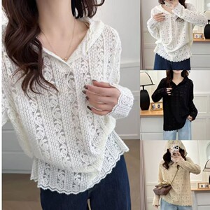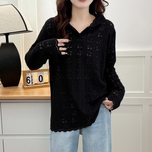 微胖大码女装秋季新款洋气立体钩花蕾丝连帽衫套头打底衫长袖