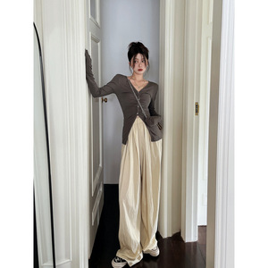 早秋机能小众设计感排扣v领纯色休闲辣妹上衣高腰阔腿裤女两件套