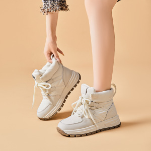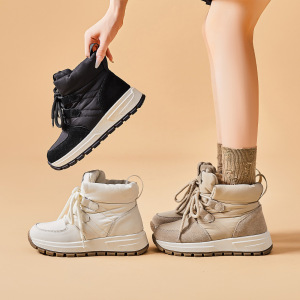 雪地靴女2025冬季新款羽绒布加绒加厚保暖短靴防水防滑东北大棉鞋