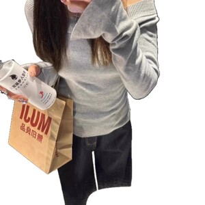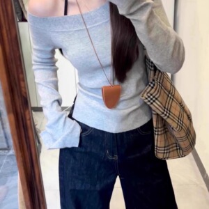 【人棉】斜肩露肩长袖打底女秋冬修身显瘦辣妹上衣打底衫设计