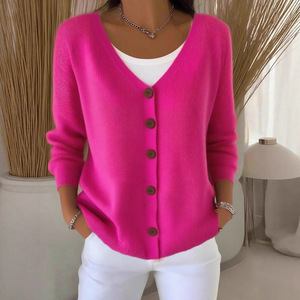 女装纯色针织纽扣毛衣开衫宽松休闲欧美跨境亚马逊独立站2025新款