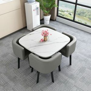 【白理石纹方桌】4浅灰皮椅