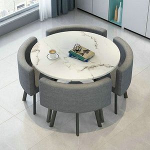 简约现代餐桌小户型家用餐桌椅桌椅洽谈组合客厅圆桌完全收纳餐椅