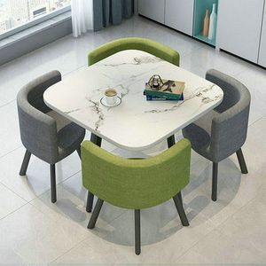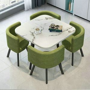【白理石纹方桌】4绿色布椅
