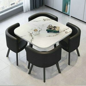 【白理石纹方桌】4黑色皮椅