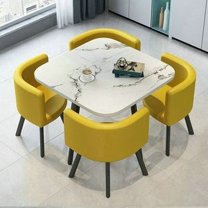 【白理石纹方桌】4黄色皮椅