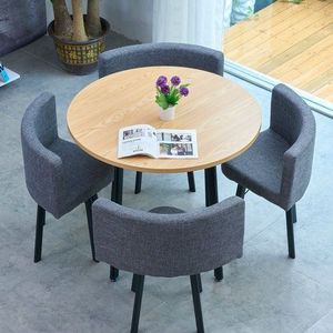 【浅木纹圆桌】4深灰布椅
