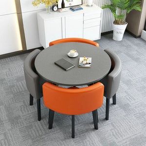 【灰布纹圆桌】2橘色2深灰皮椅