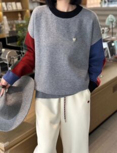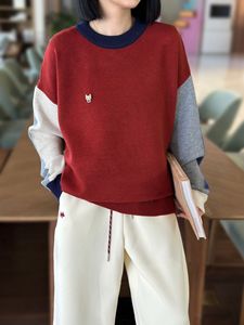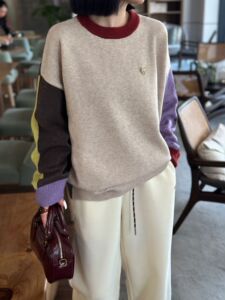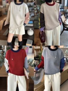 外贸亚马逊新品拼色小众设计师款宽松休闲百搭套头女装毛衣外穿